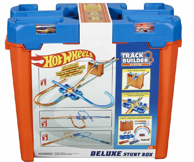 - The Deluxe Stunt Box is jam-Packed with everything kids need to crash, smash and stunt!