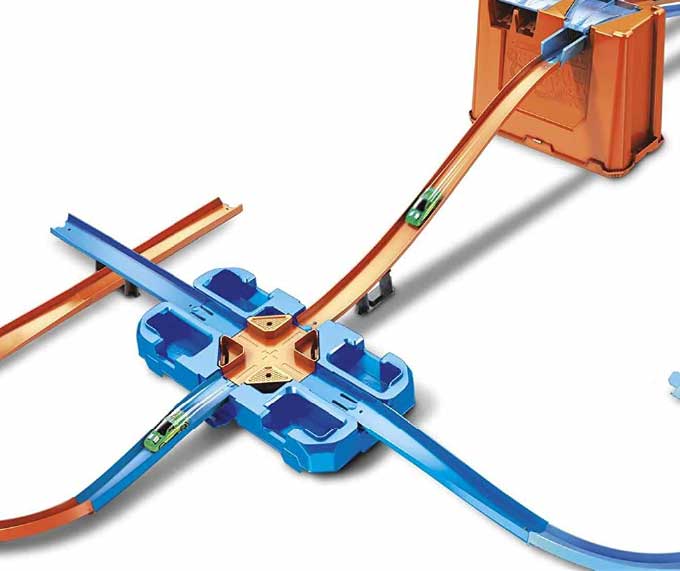 - Includes a base (the box), track pieces, banked curves, crash zone lid, launchers, diverter and two vehicles!