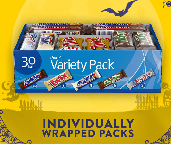 - Contains one (1) 55-ounce, 30-count box of full-size, individually wrapped Chocolate Halloween Candy